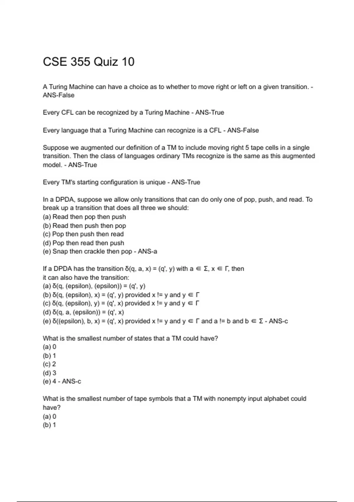 CSE 355 Quiz 10