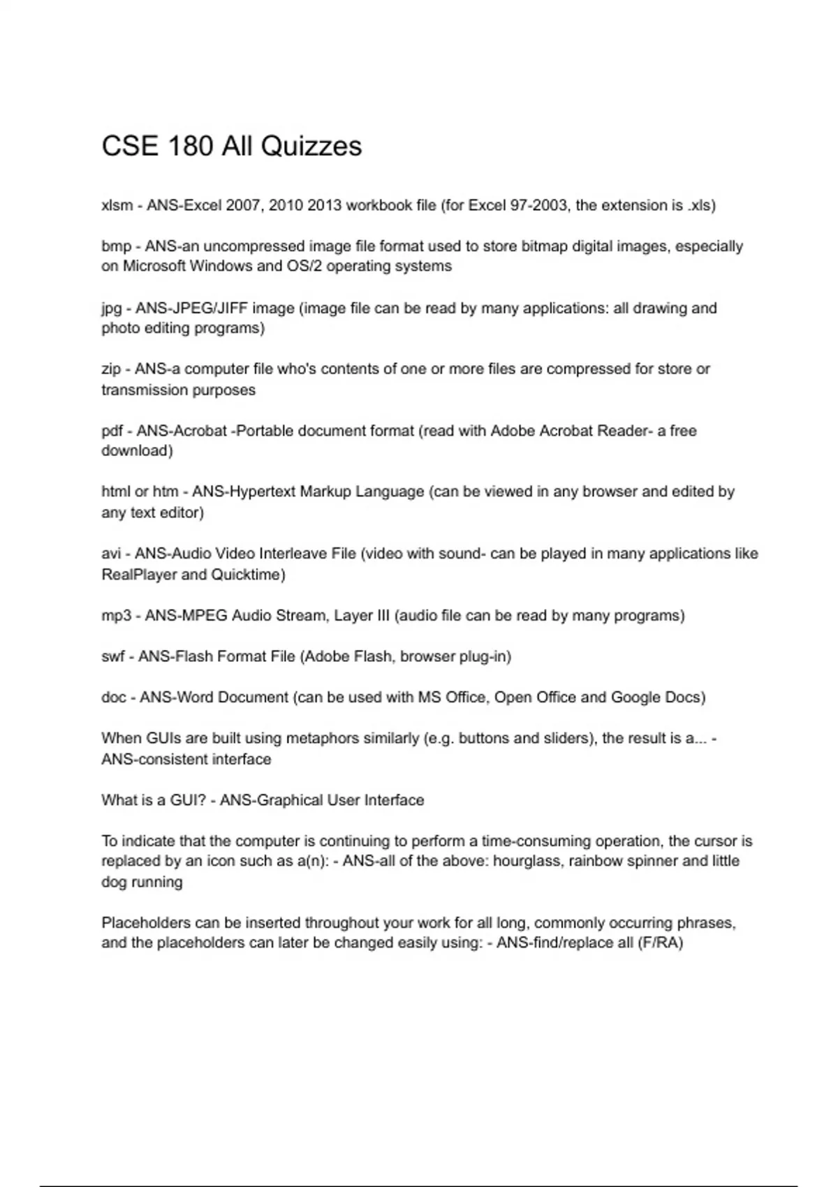 CSE 180 All Quizzes Questions with 100% Actual correct answers | verified | latest update | Graded A+ | Already Passed | Complete Solution