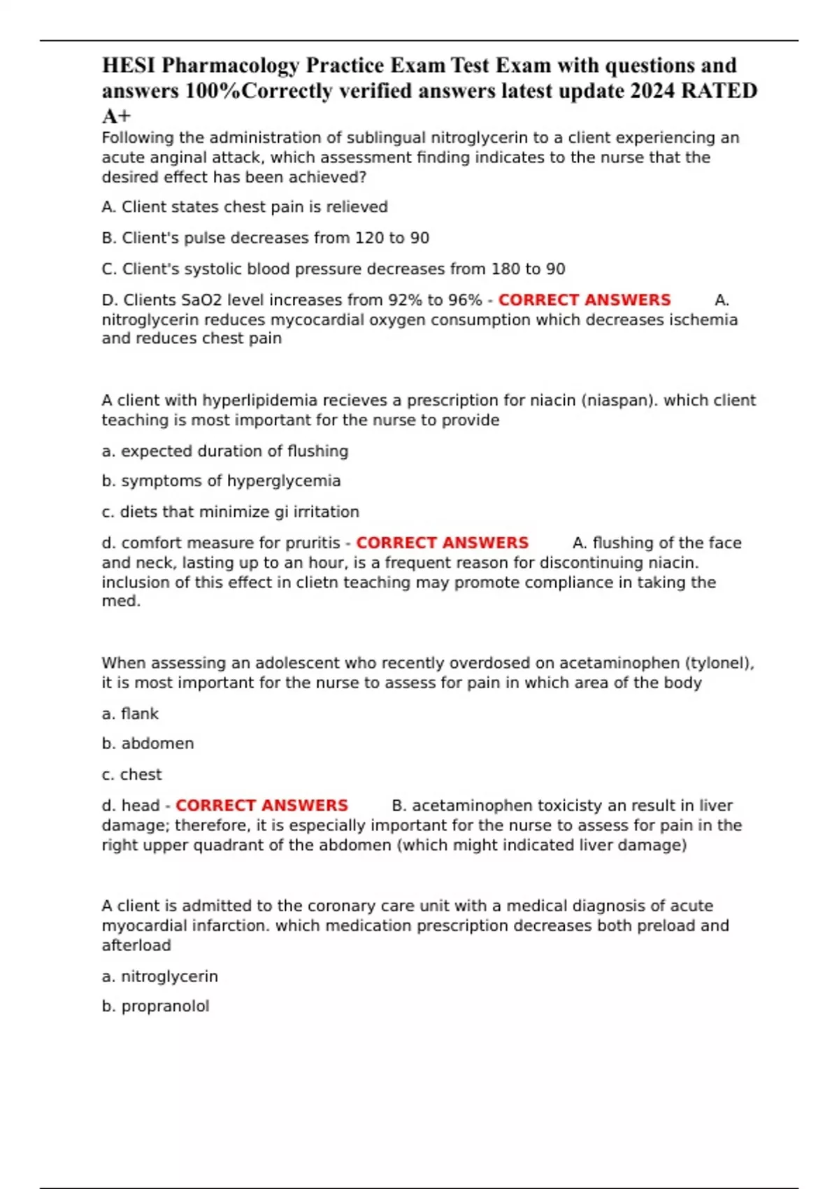 HESI Pharmacology Practice Exam Test Exam with questions and answers 100%Correctly verified answers latest update 2024 RATED A+