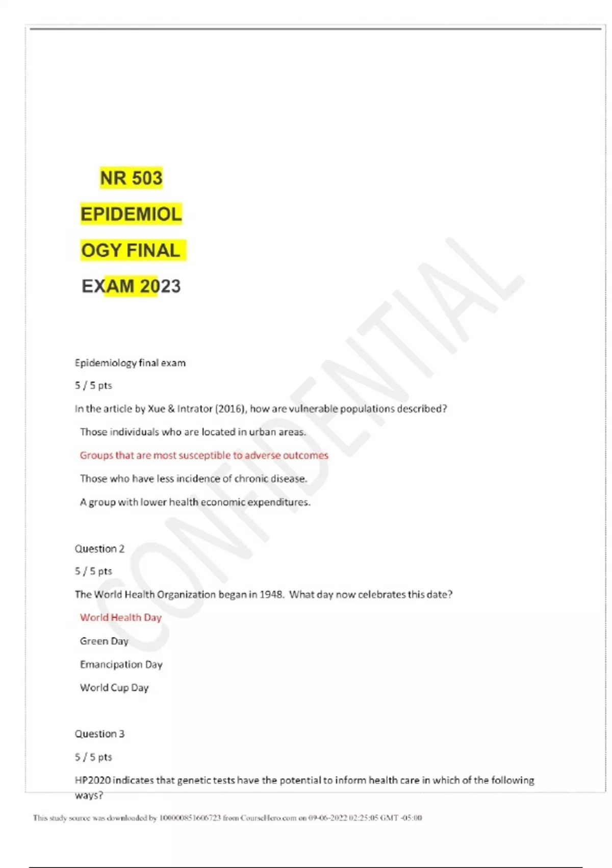 NR 503 EPIDEMIOLOGY FINAL EXAM 2024/2025 Epidemiology final exam 5 / 5 pts In the article by Xue & Intrator (2016), how are vulnerable populations described? Those individuals who are located in urban areas. Groups that are most susceptible to adverse outcomes Those who have less incidence of chronic disease. A group with lower health economic expendit