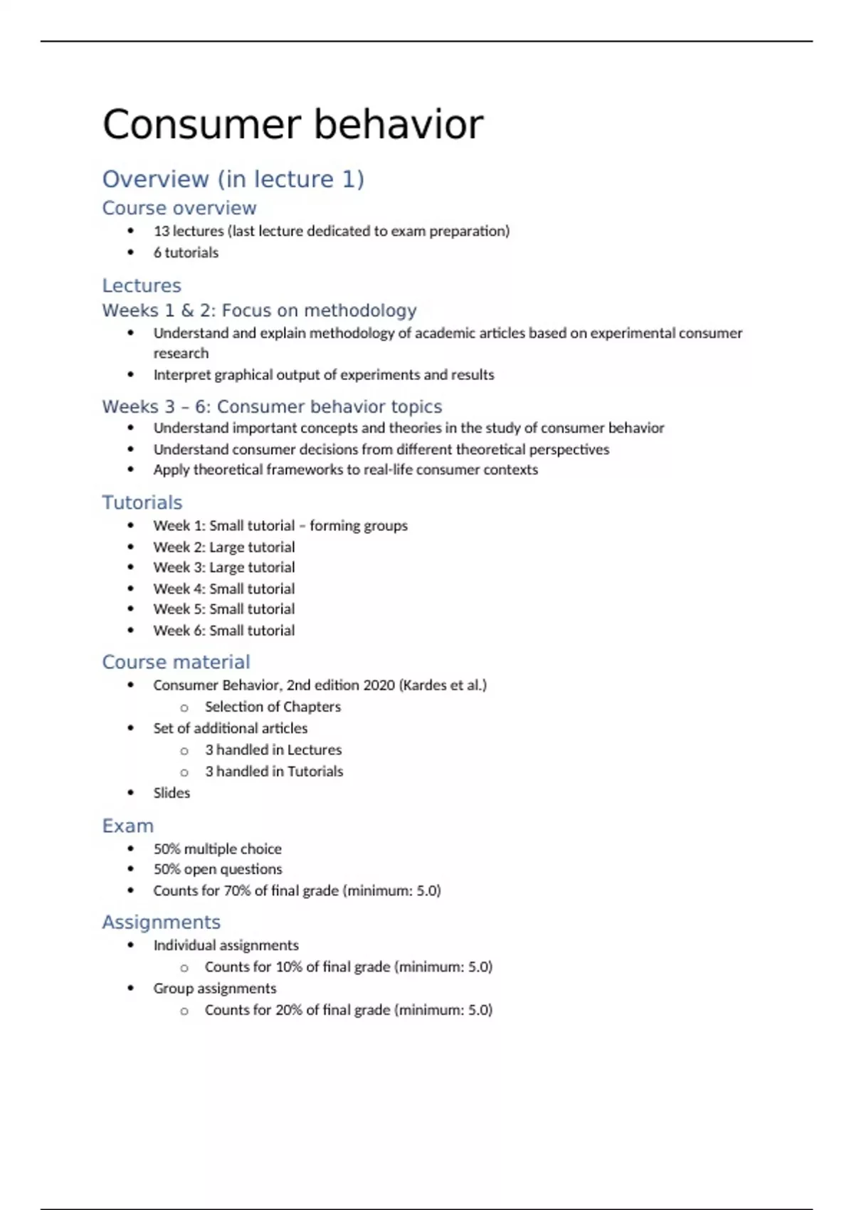All of the KEY points to study this course, all coming from the lectures, received a 9.5 for the exam memorizing this summary! Easy to understand, study and memorize due to clear and easy structure.
