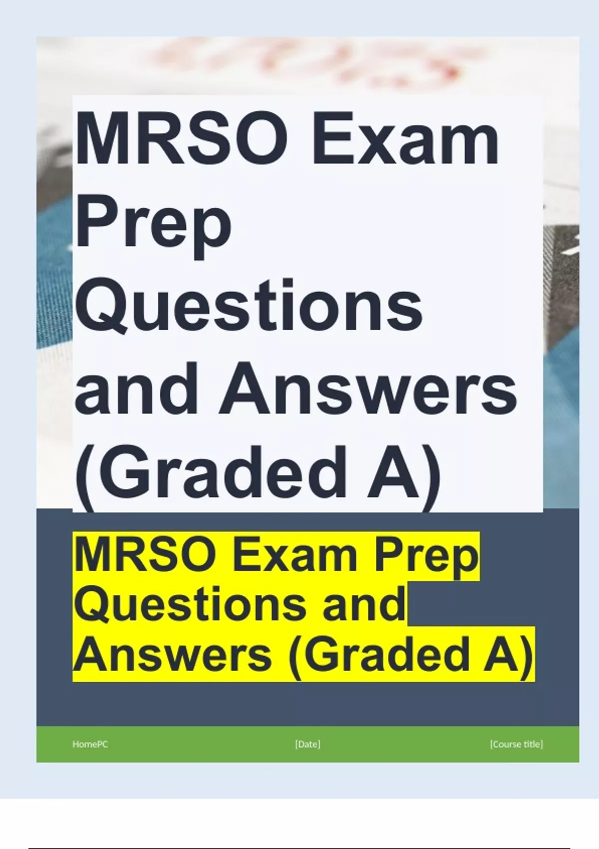 MRSO Exam Prep Questions and Answers (Graded A)MRSO Exam Prep Questions and Answers (Graded A)MRSO Exam Prep Questions and Answers (Graded A)MR Safety Officer responsibilities - ANSWER-The role of MRSO is often carried out by the senior Radiographer (in the USA this will generally be an MR technologist), but other suitably trained individuals could also fill this role. Multiple MRSOs could be appointed, provided only one is in charge at a given time. His/her responsibilities include the following: To be readily accessible and available (eg, to the operators of the MR system) at all times that the MR facility is accessible. In which zone should patients change out of their street clothes? - ANSWER-Zone 2