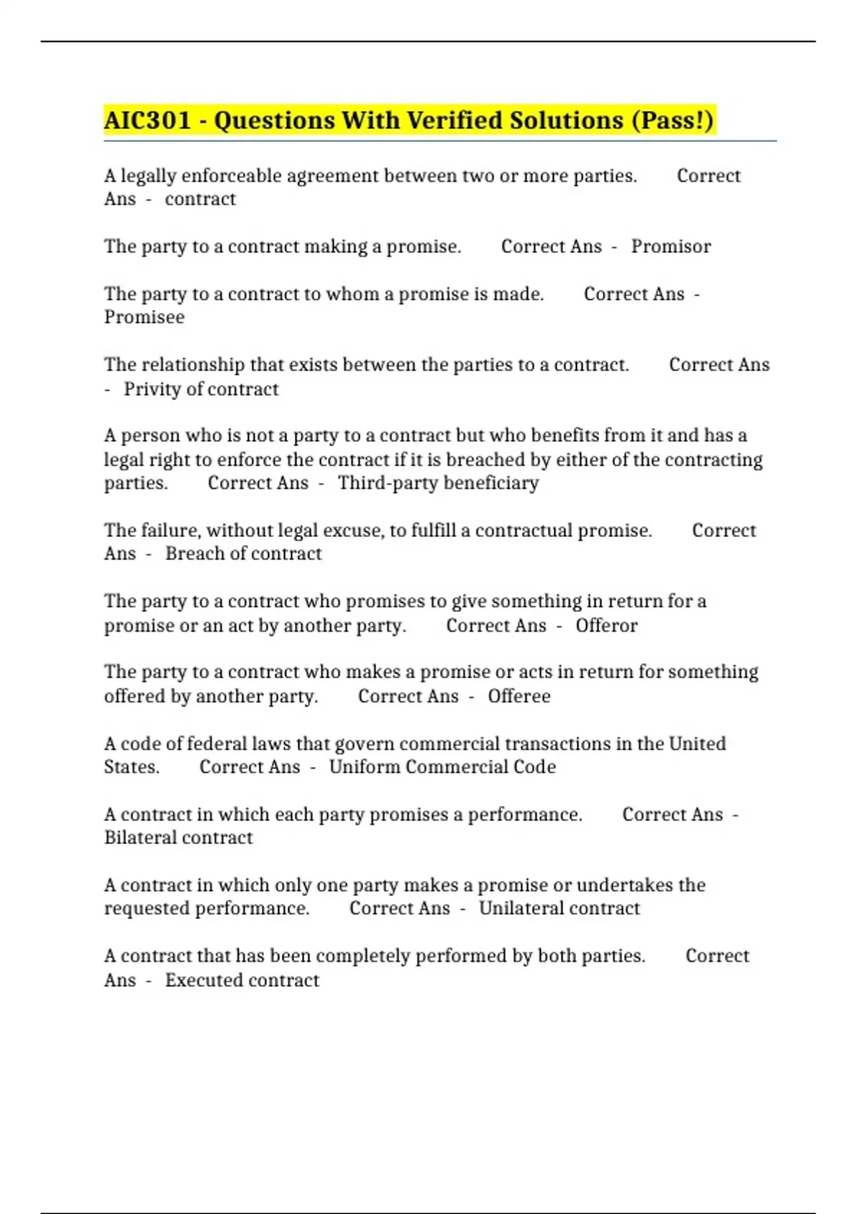 AIC301 - Questions With Verified Solutions (Pass!)