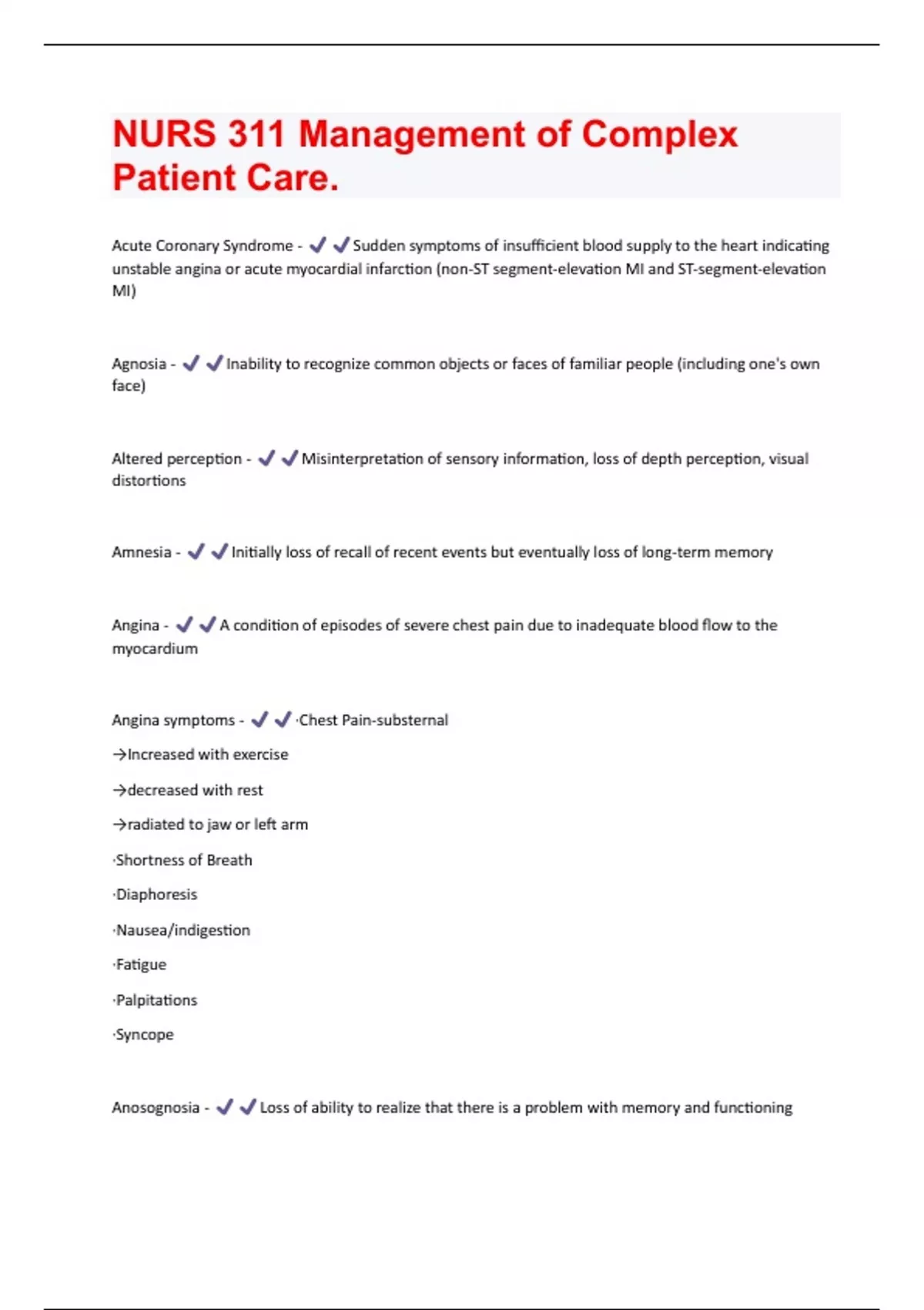 NURS 311 Management of Complex Patient Care Questions And Answers With Verified Tests