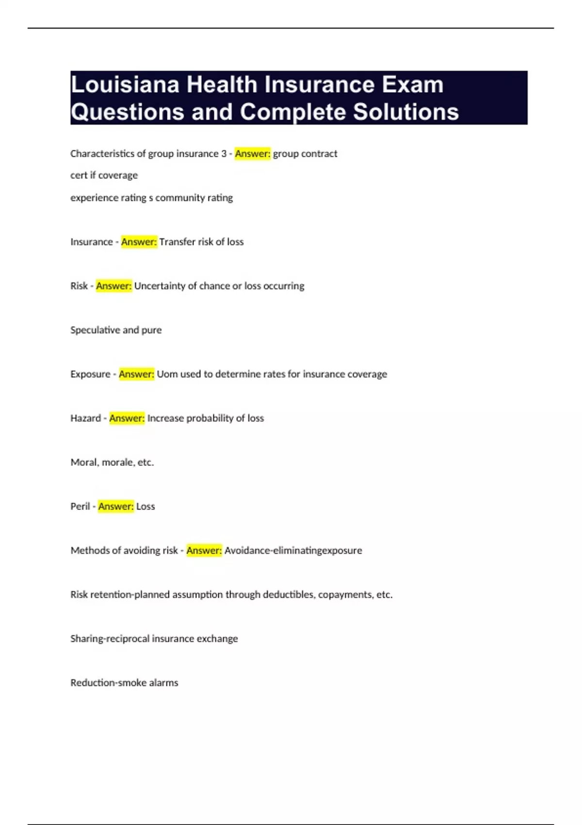 Louisiana Health Insurance Exam Questions and Complete Solutions.