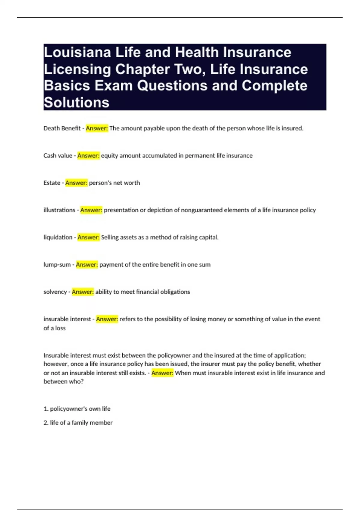 Louisiana Life and Health Insurance Licensing Chapter Two, Life Insurance Basics Exam Questions and Complete Solutions
