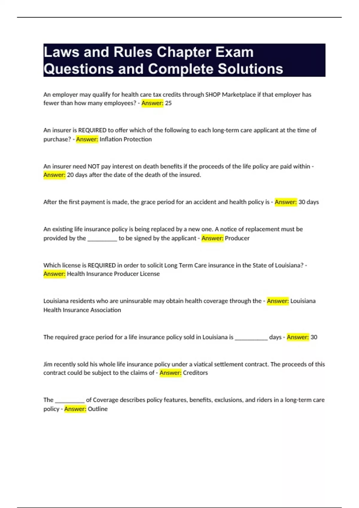 policy - Answer: Outline What is the purpose of the Louisiana Life and Health Insurance Guaranty Association? - Answer: Ensures that claims filed against insolvent insurance companies will be paid. It was created to protect policyholders, insureds, and beneficiaries of life insurance policies, health insurance policies, annuity contracts, and supplemental contracts when insurers fail to perform contractual obligations due to financial impairment