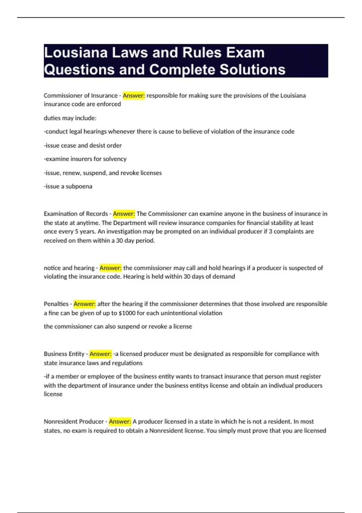Lousiana Laws and Rules Exam Questions and Complete Solutions