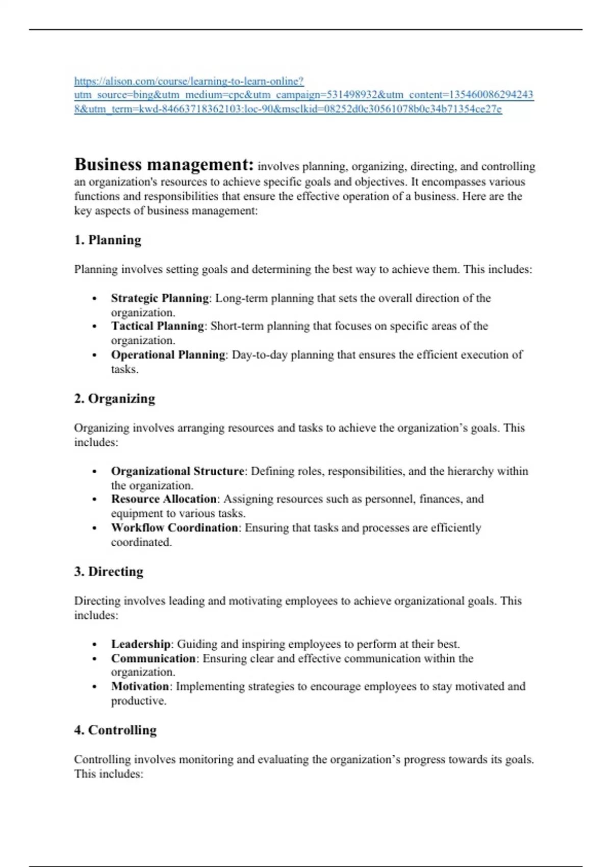 Summary BUSI 3054 business managements and applications 2024