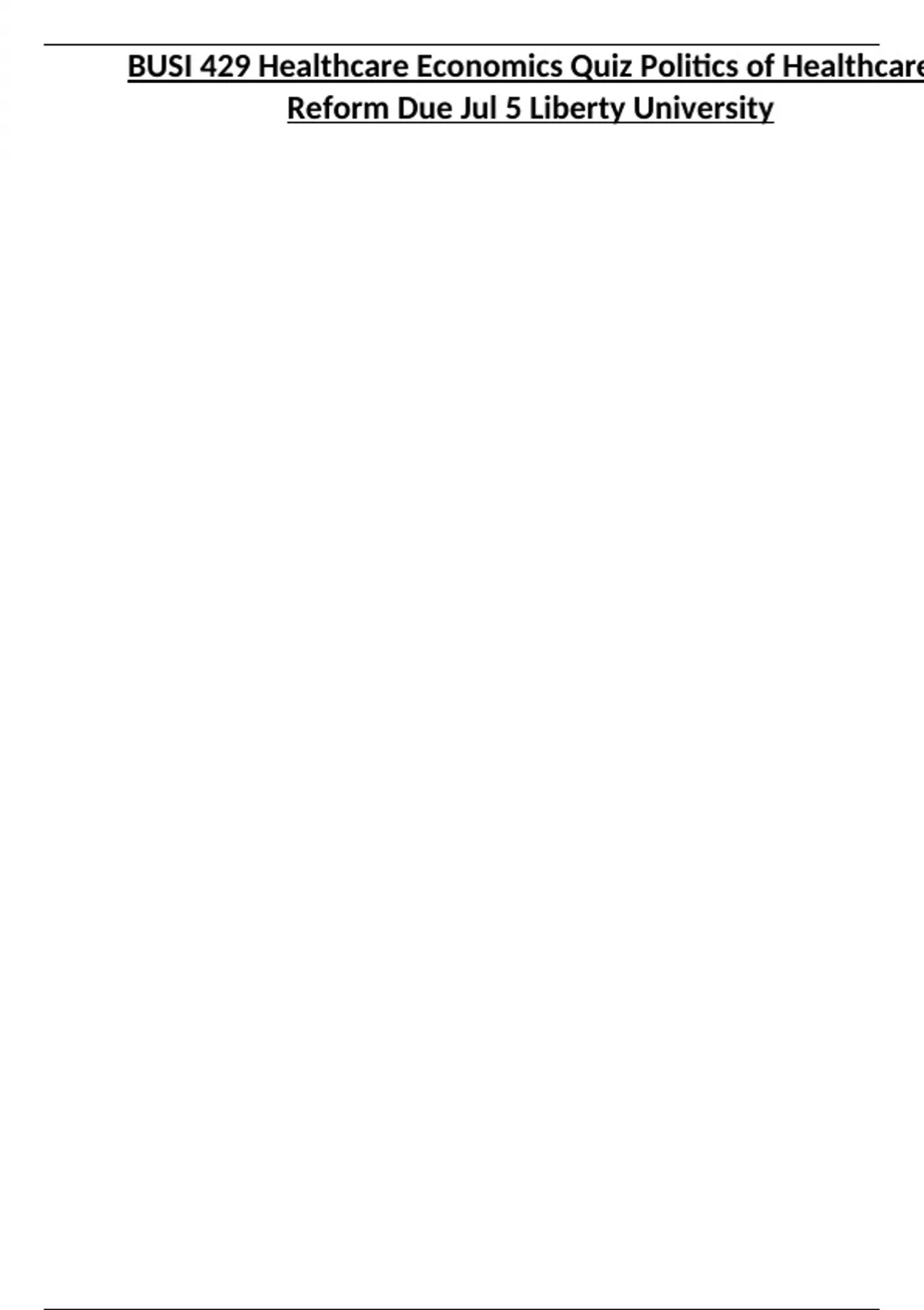 BUSI 429 Healthcare Economics Quiz Politics of Healthcare Reform Due Jul 5 Liberty University