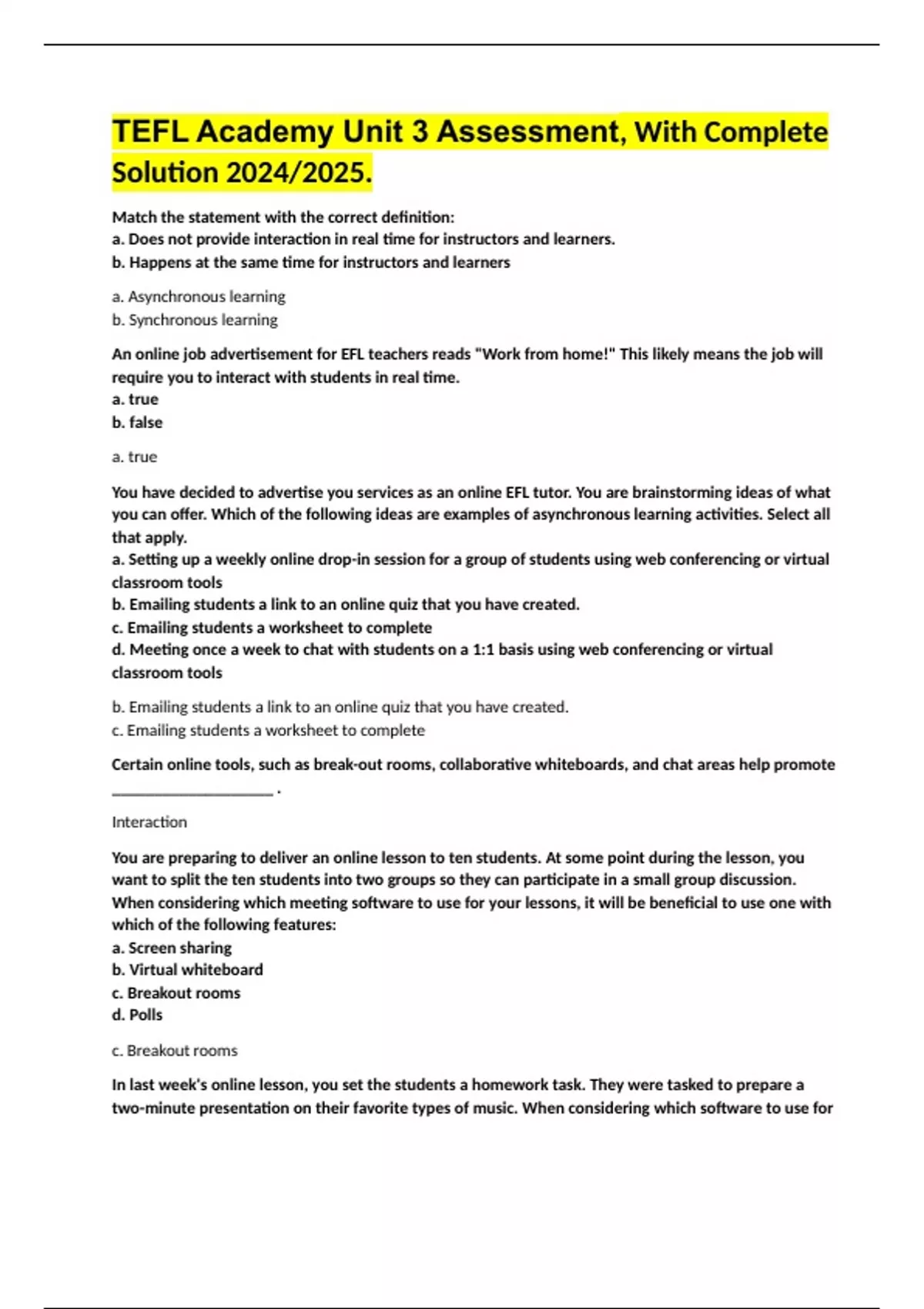 You are preparing to deliver an online lesson to ten students. At some point during the lesson, you