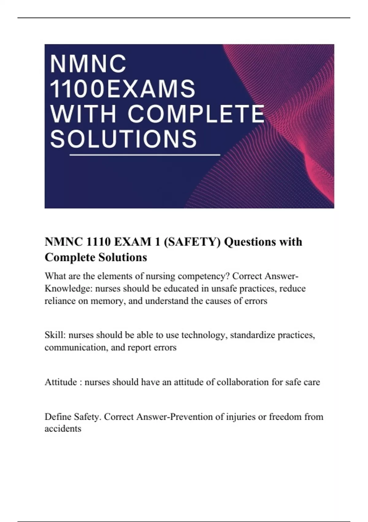 NMNC 1110 EXAM 1 (SAFETY) Questions with Complete Solutions