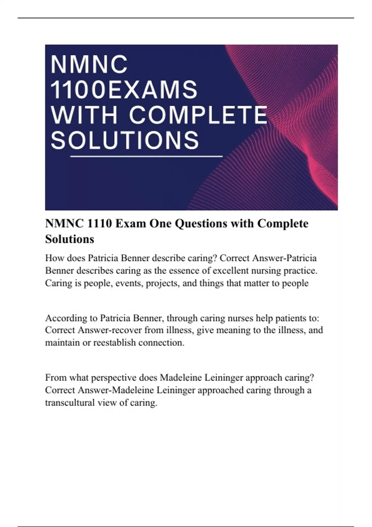 nmnc 1110 exam one questions with complete solutio