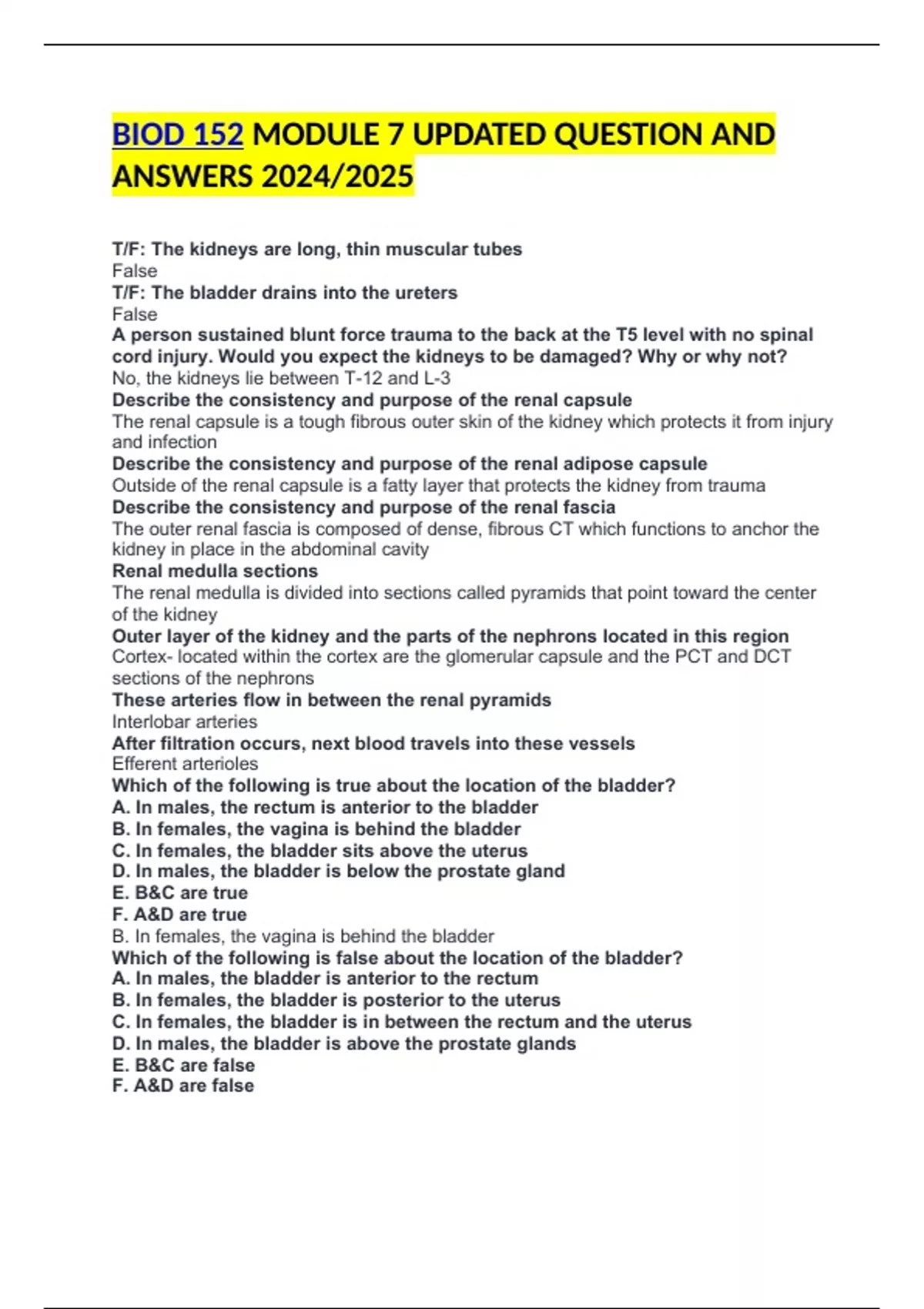 In females the bladder is posterior to the uterus & in females, the bladder is between the