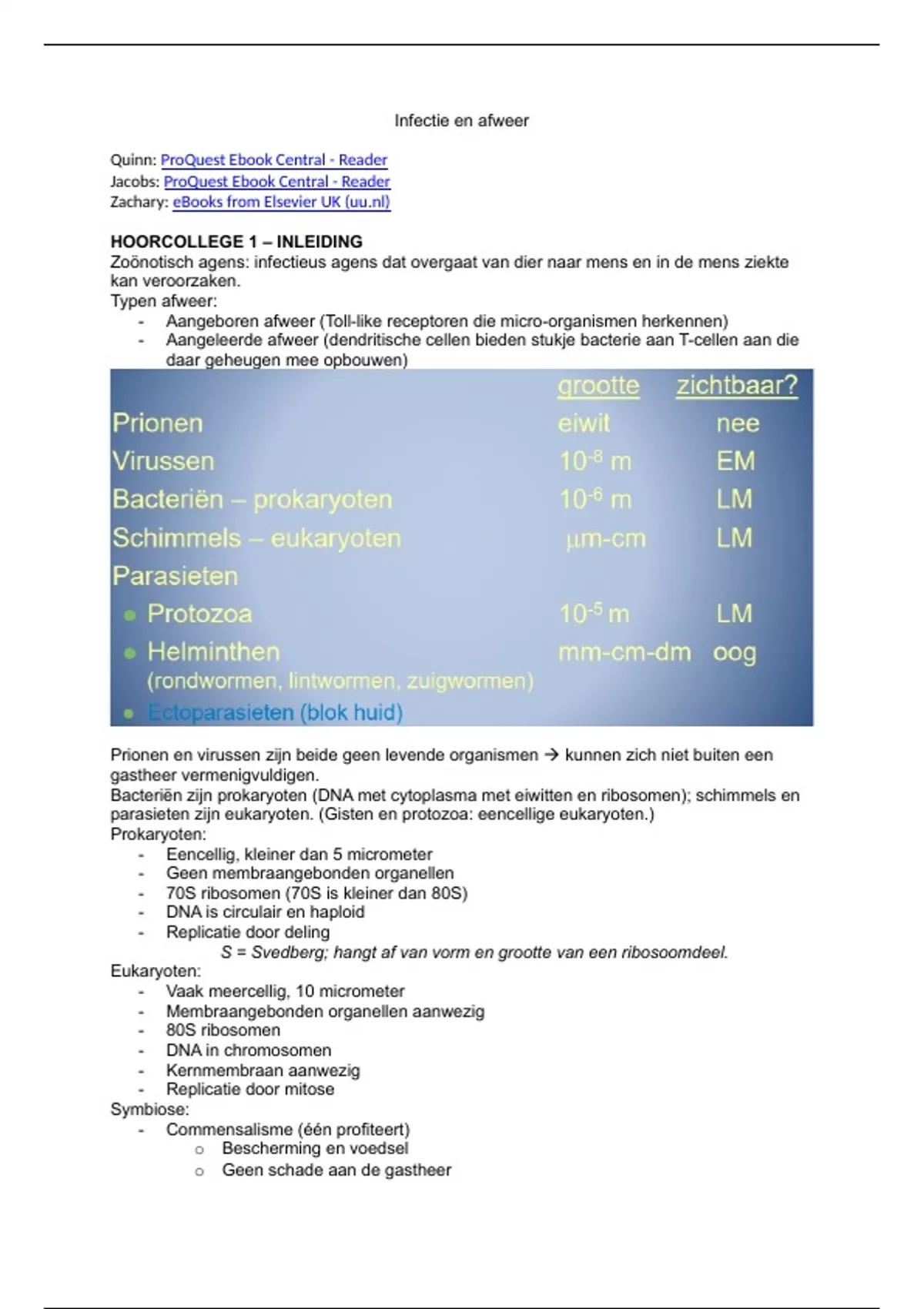 Samenvatting van alle hoorcolleges en een uitgebreide samenvatting van parasitologie en bacteriologie.
