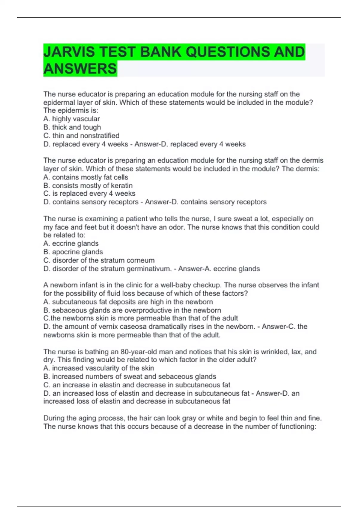 JARVIS TEST BANK QUESTIONS AND ANSWERS