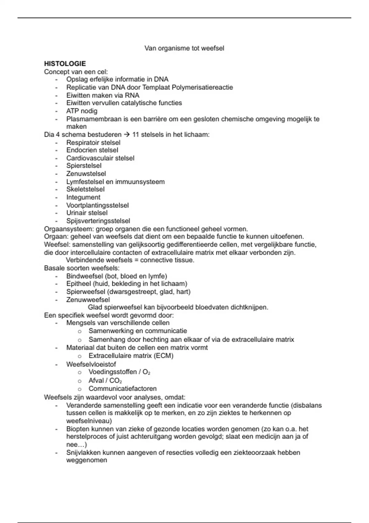 Samenvatting van alle hoorcolleges, histologie, microscopiepractica.