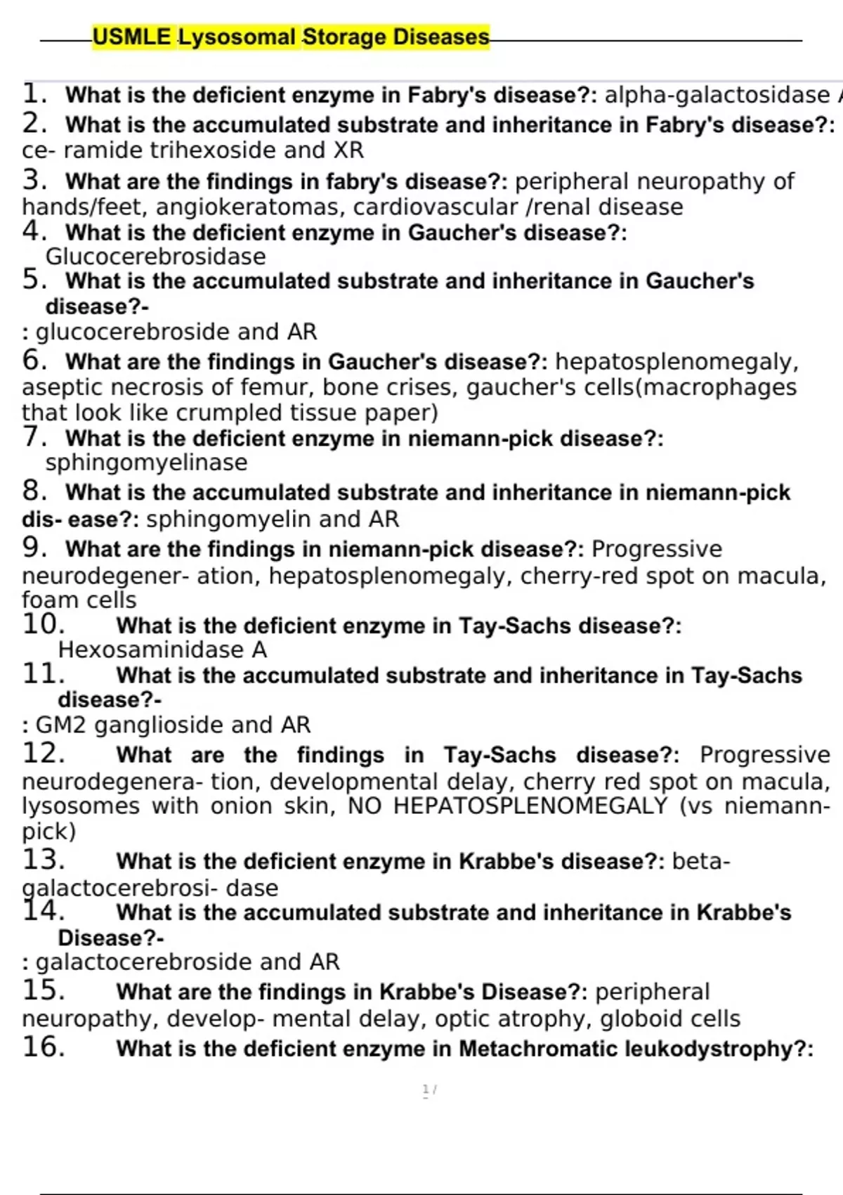 - USMLE Lysosomal Storage Diseases