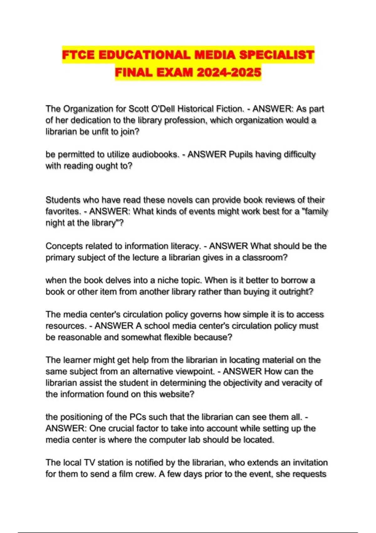 ftce educational media specialist final exam 2024