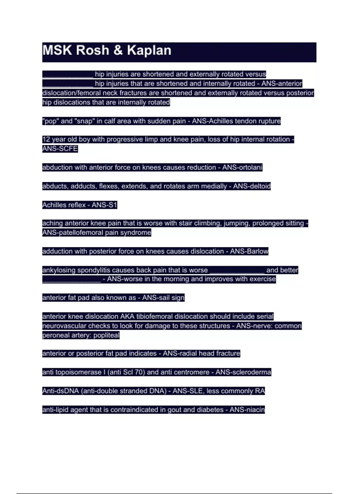MSK Rosh & Kaplan Questions with 100% correct answers | verified | latest update 2024