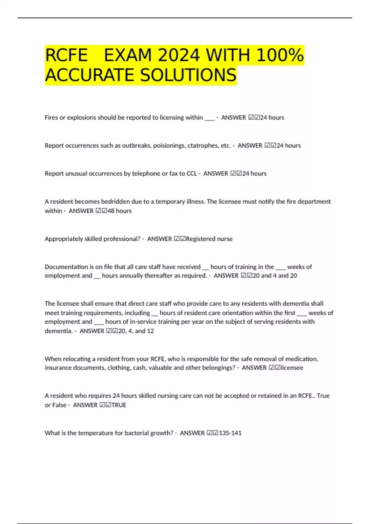 RCFE EXAM 2024 WITH 100% ACCURATE SOLUTIONS