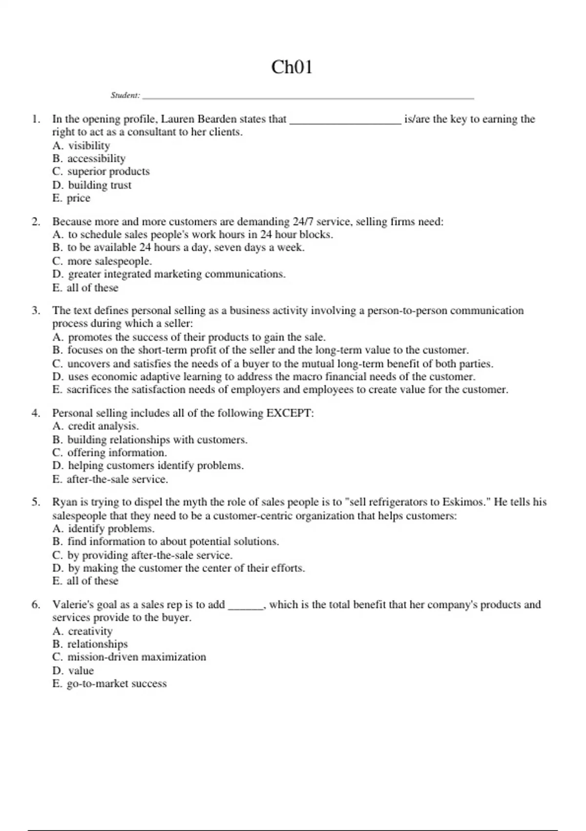 ,7. Which of the following statements most describes someone engaged in personal selling?