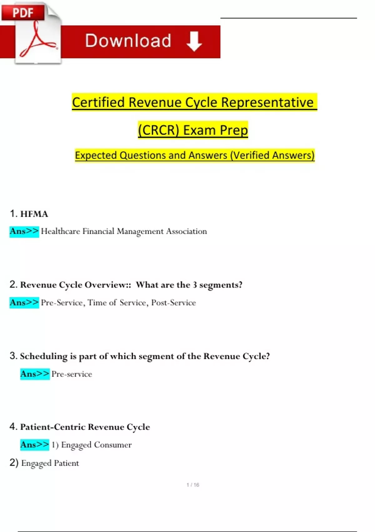 Certified Revenue Cycle Representative - CRCR Exam Prep (2024 / 2025) Questions and Answers (Verified Revised Full Exam)