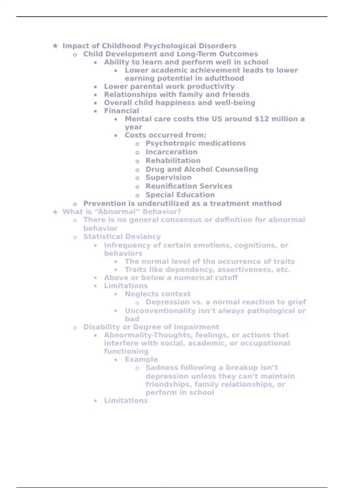 Class notes for PY 461 (Child Psychopathology) at University of Alabama covers all units and test material for the semester.