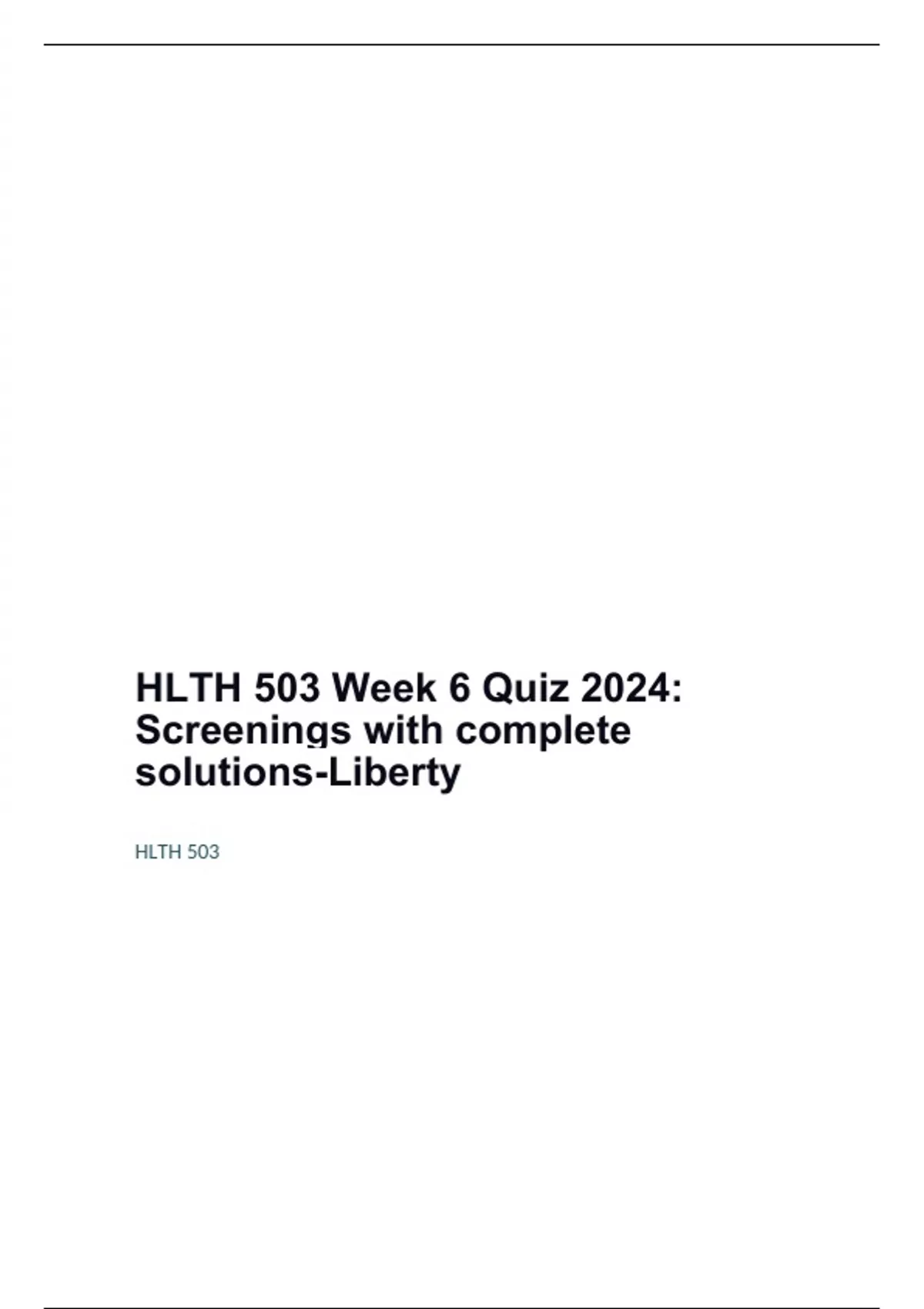 HLTH 503 Week 6 Quiz 2024: Screenings with complete solutions-Liberty