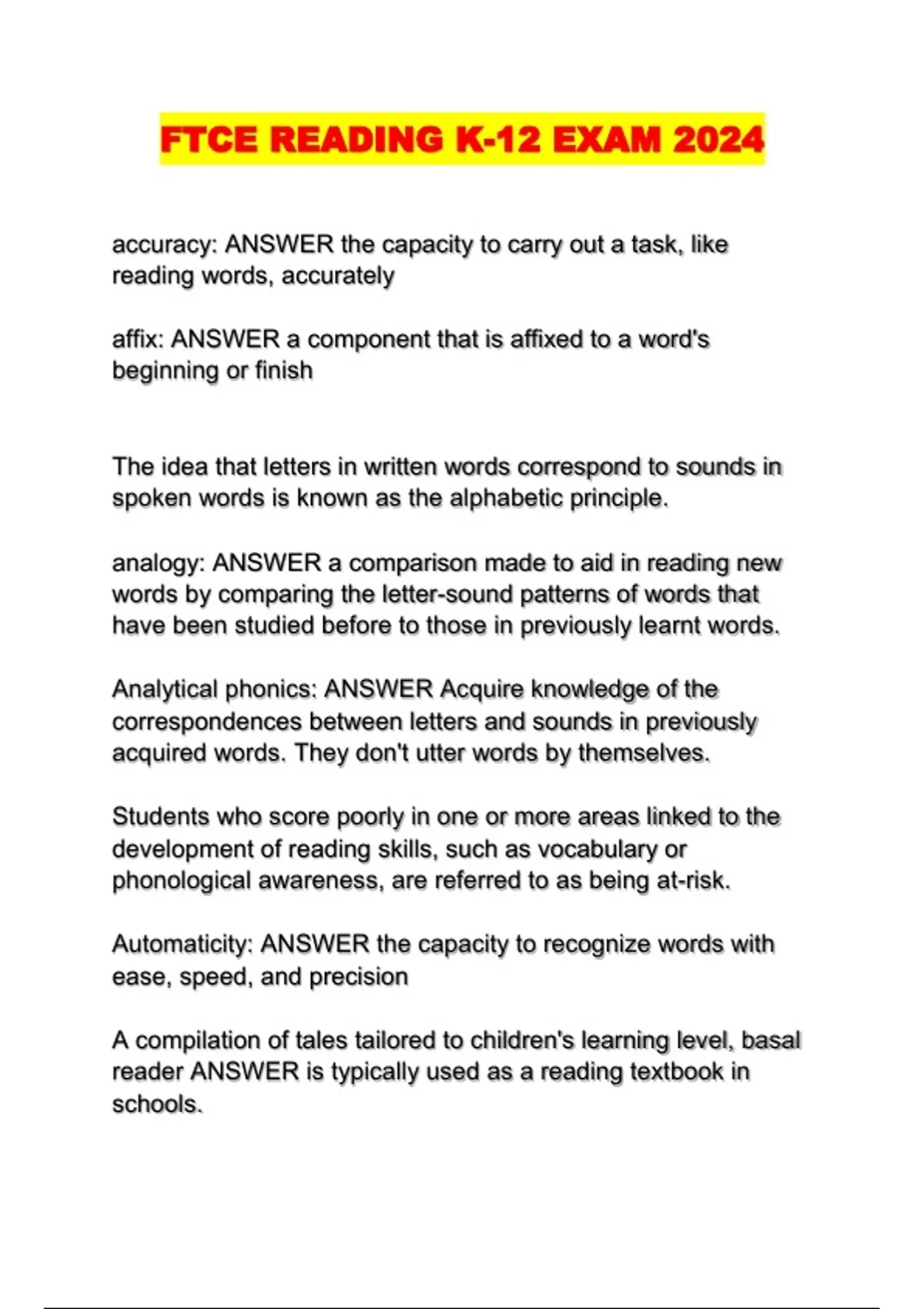 FTCE ALL PACKAGED EXAMS WITH QUESTIONS AND CORRECT ANSWERS 2024/2025