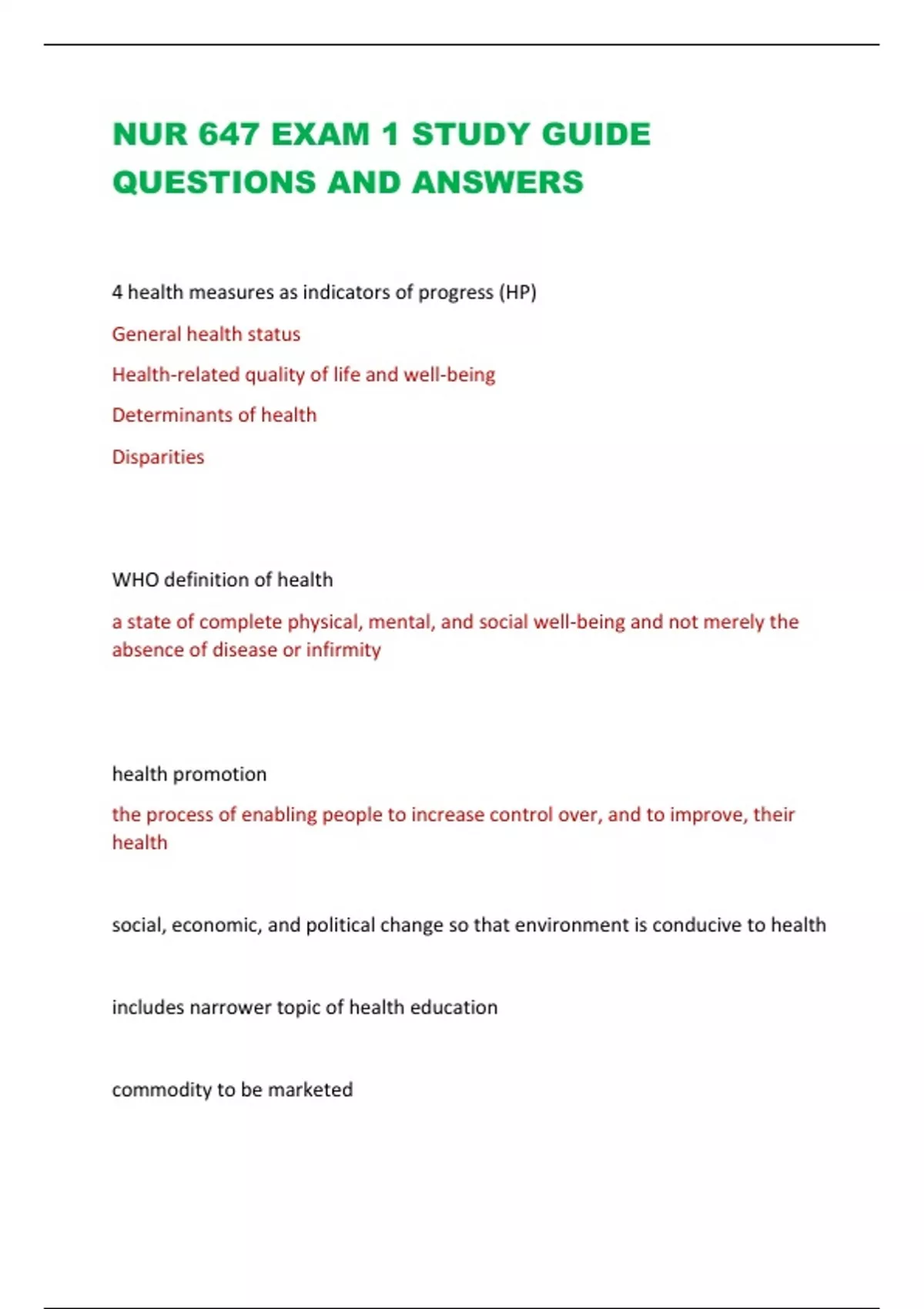 NUR 647 EXAM 1 STUDY GUIDE QUESTIONS AND ANSWERS