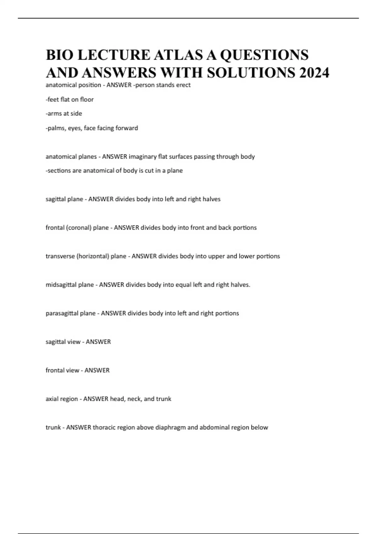 BIO LECTURE ATLAS A QUESTIONS AND ANSWERS WITH SOLUTIONS 2024