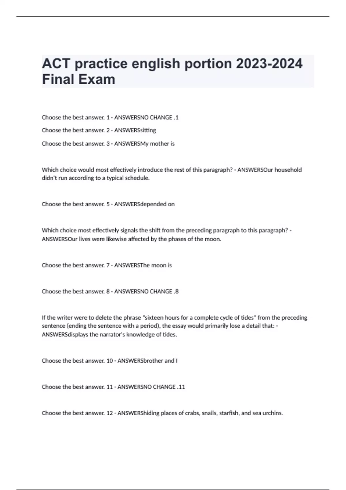 Choose the best answer. 11 - ANSWERSNO CHANGE .11