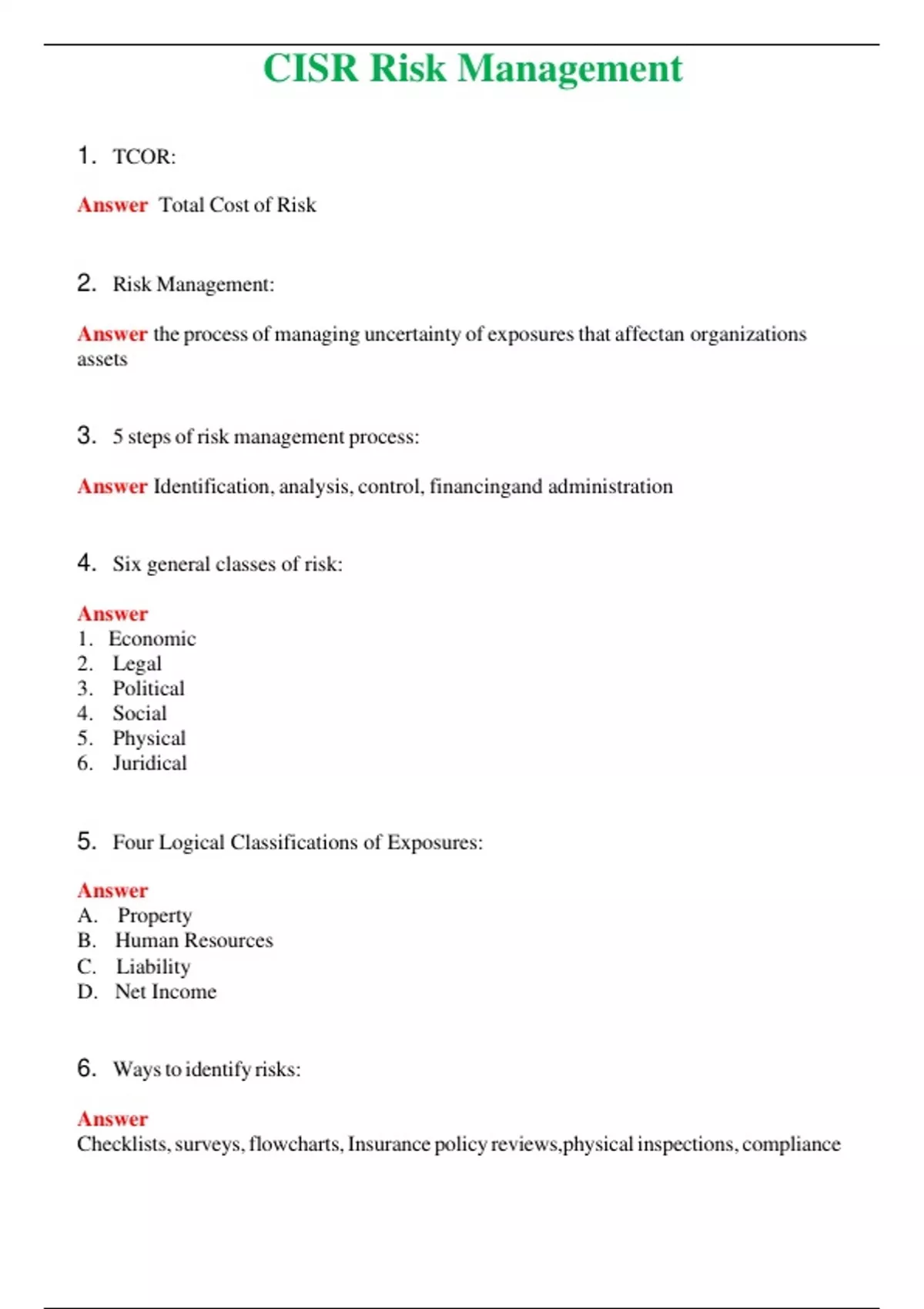 CISR Risk Management (Latest 2024) Questions With Complete Grade A+ Answers