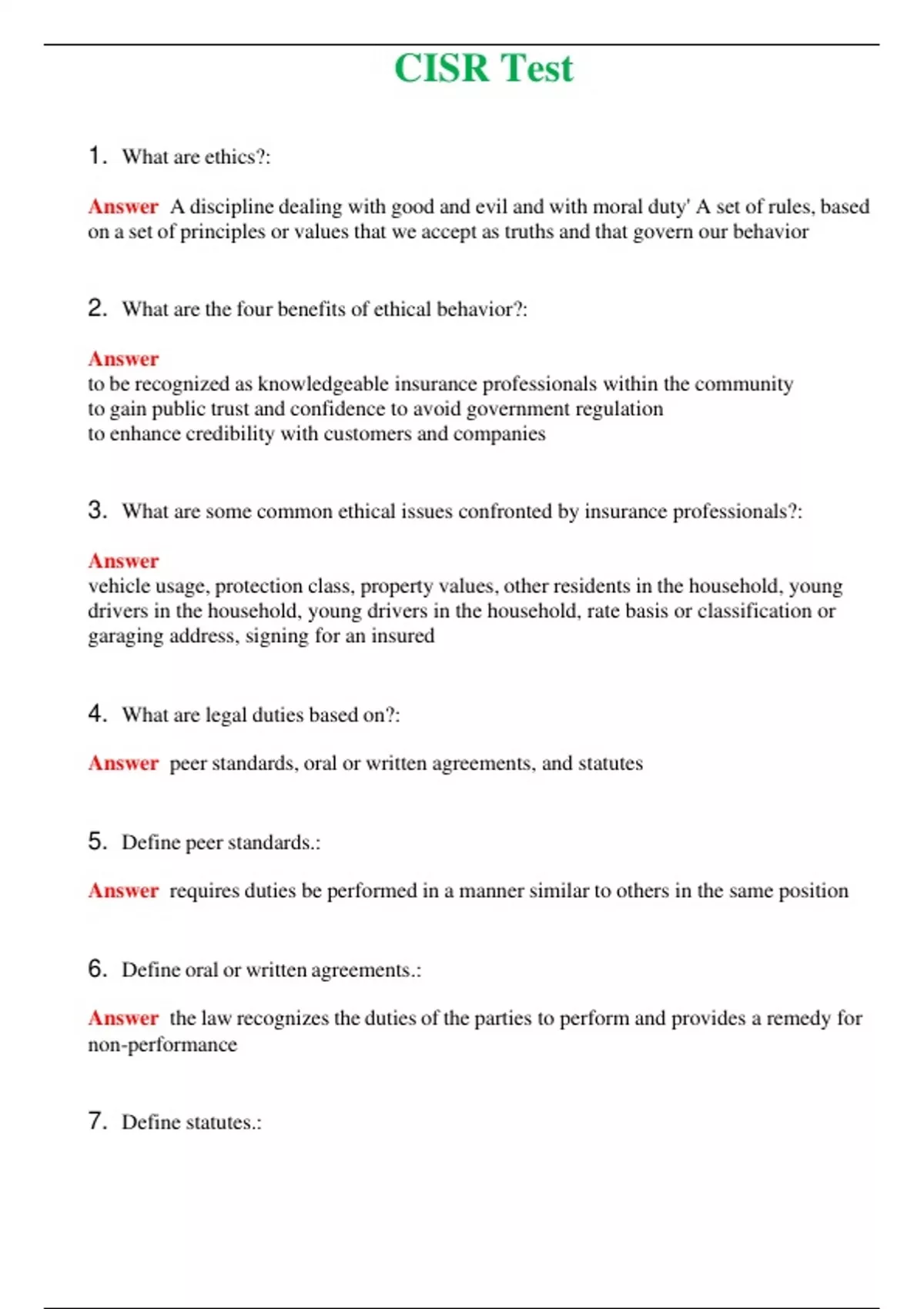 CISR Test (Latest 2024) Questions With Complete Grade A+ Answers
