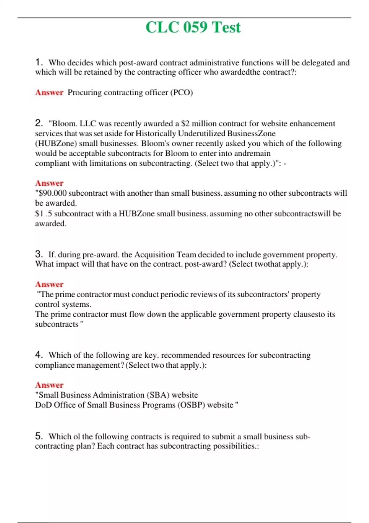 2024 CLC 059 Test | Actual Questions and Verified Answers ( Included ) 100% Correct