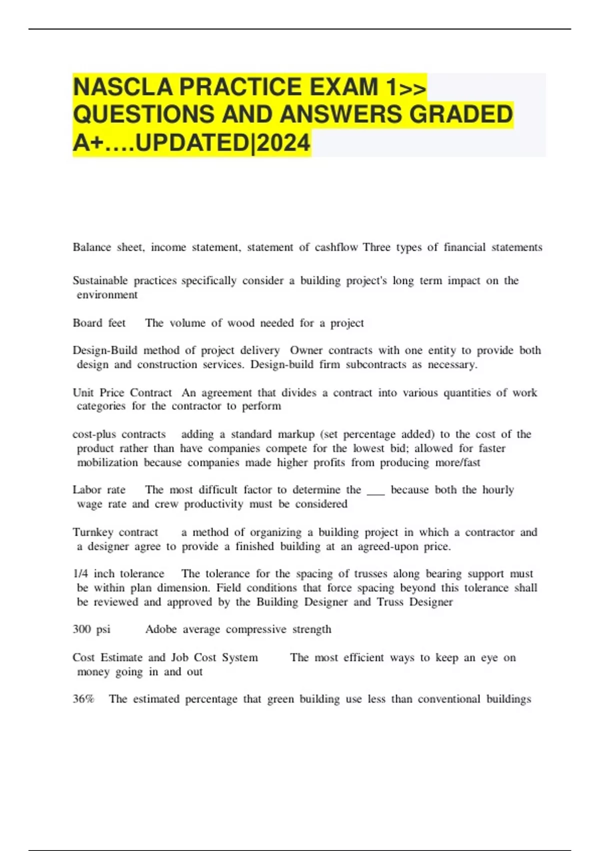 NASCLA PRACTICE EXAM 1>> QUESTIONS AND ANSWERS GRADED A+….UPDATED|2024