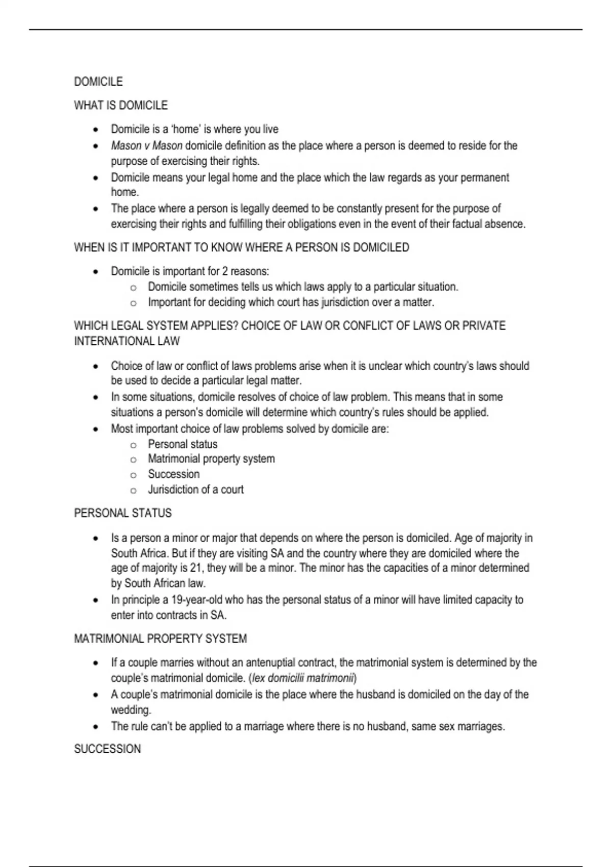 • Mason v Mason domicile definition as the place where a person is deemed to reside for the