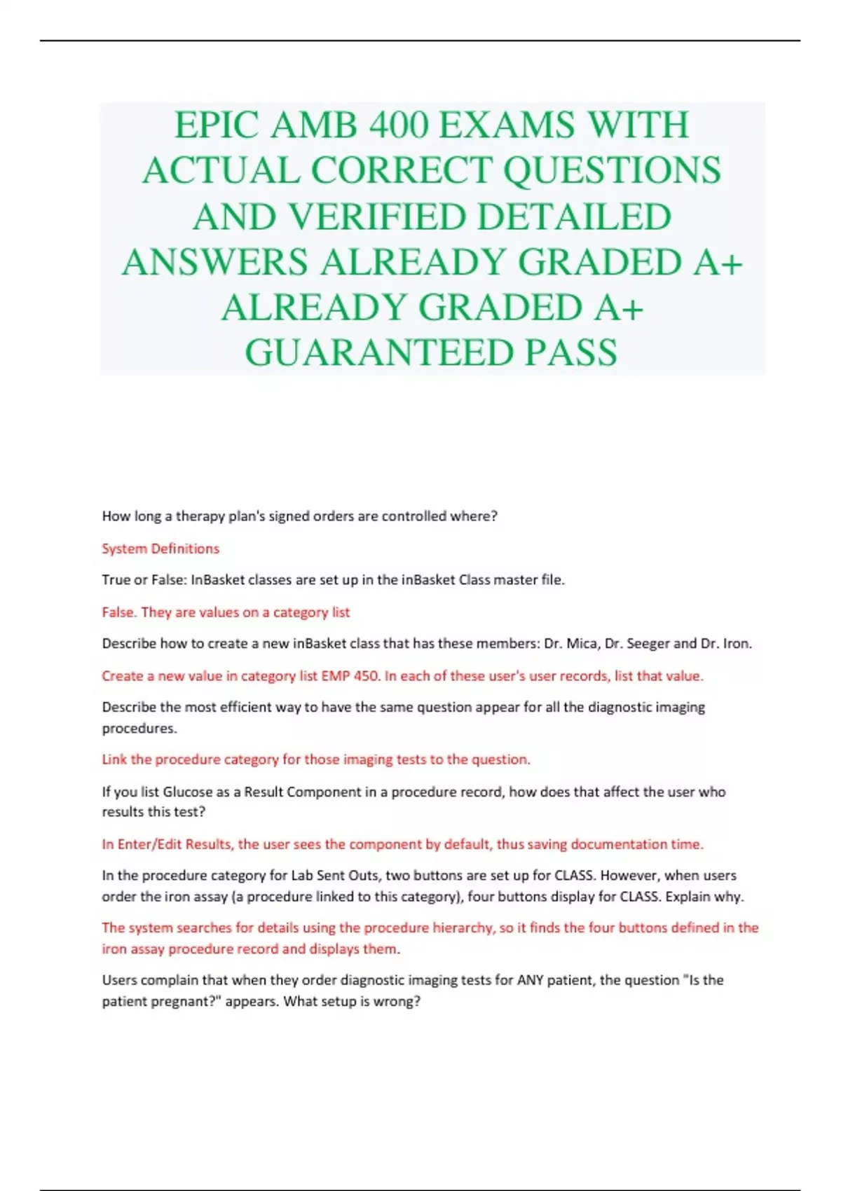 EPIC AMB 400 EXAMS WITH ACTUAL CORRECT QUESTIONS AND VERIFIED DETAILED ANSWERS ALREADY GRADED A+ ALREADY GRADED A+ GUARANTEED PASS