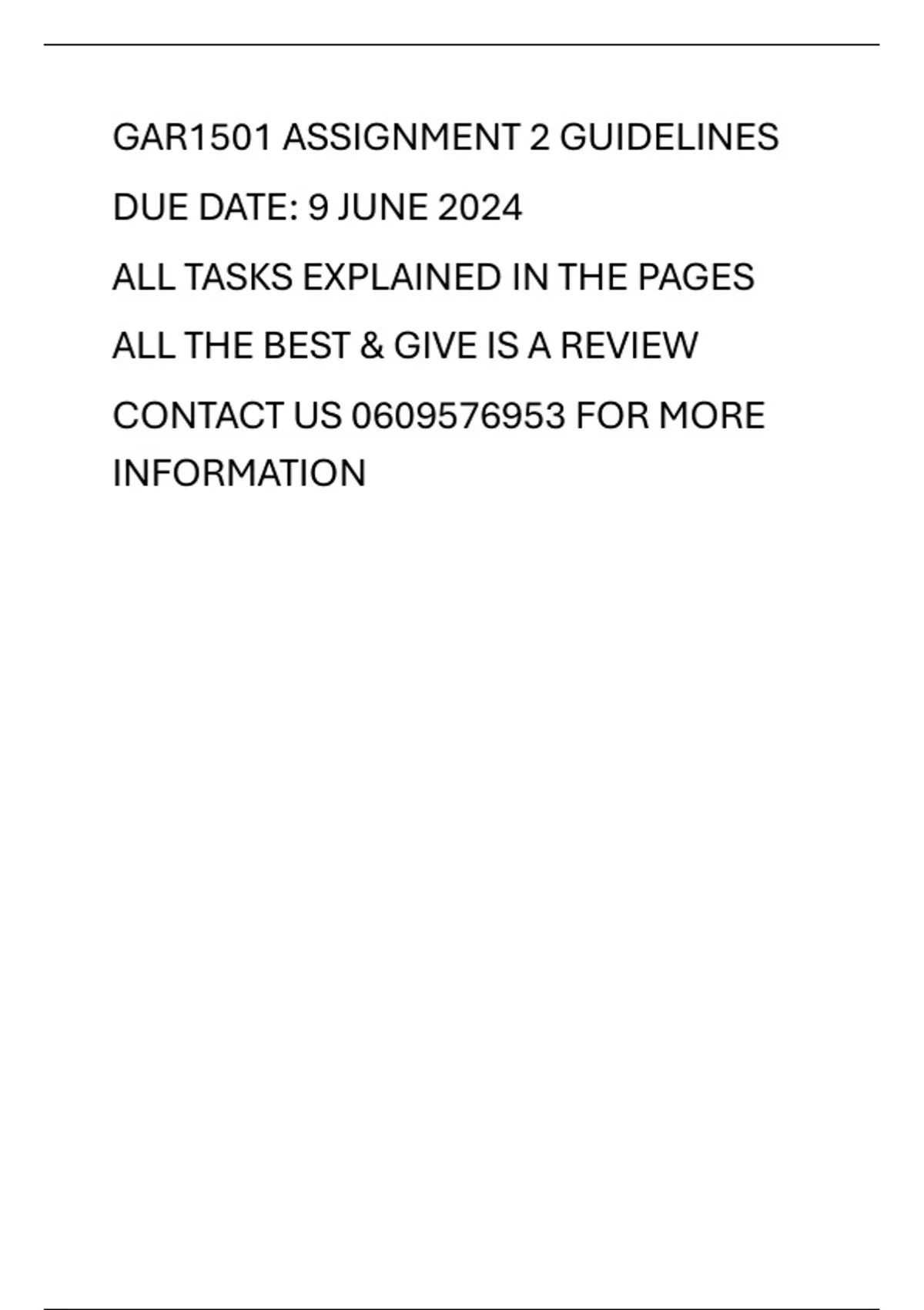 This document contains guidelines for GAR1501 assignment 2. All tasks are explained in the document. All the best and give us a review!