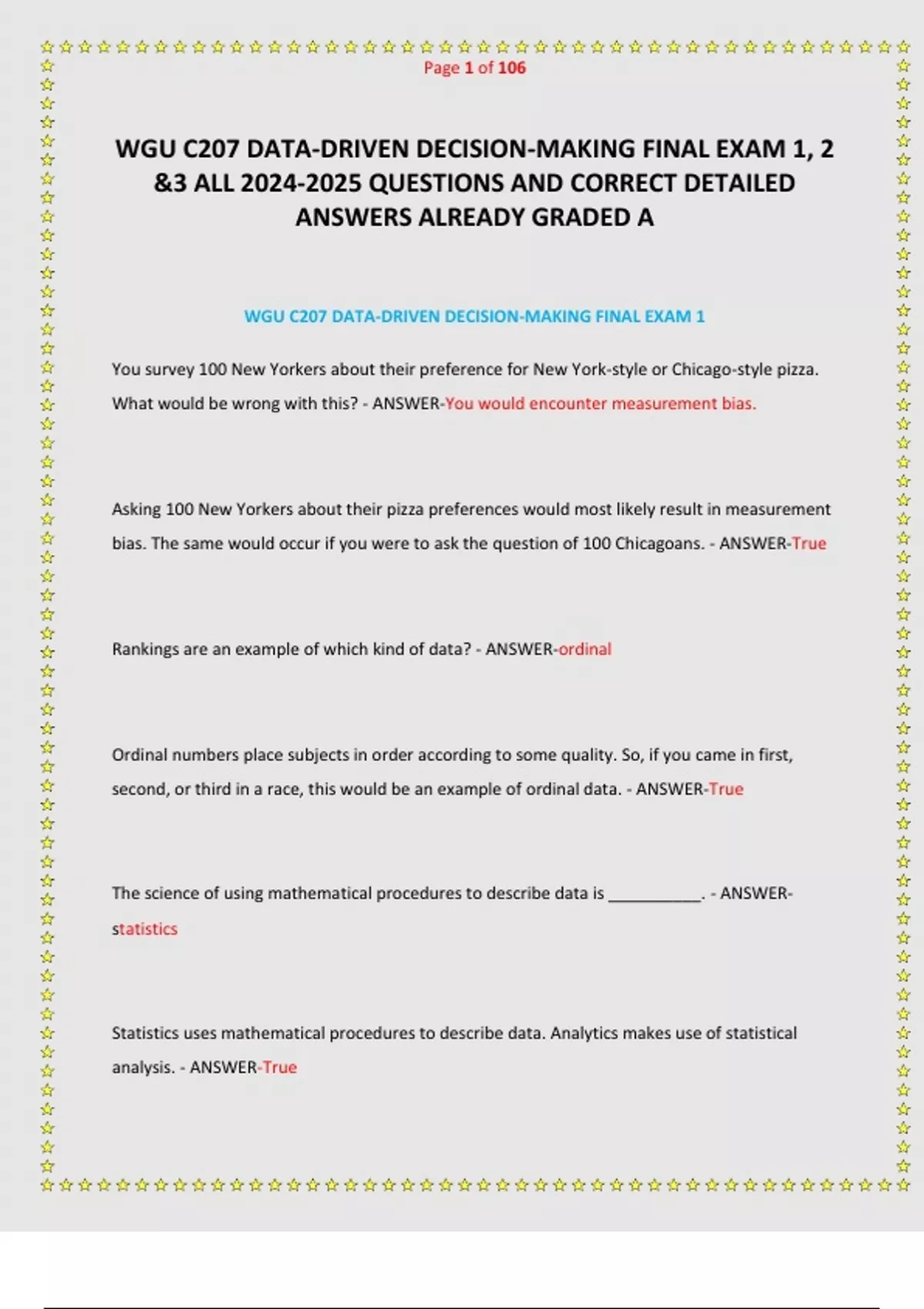 WGU C207 DATA-DRIVEN DECISION-MAKING FINAL EXAM 1, 2 &3 ALL QUESTIONS AND CORRECT DETAILED ANSWERS ALREADY GRADED A