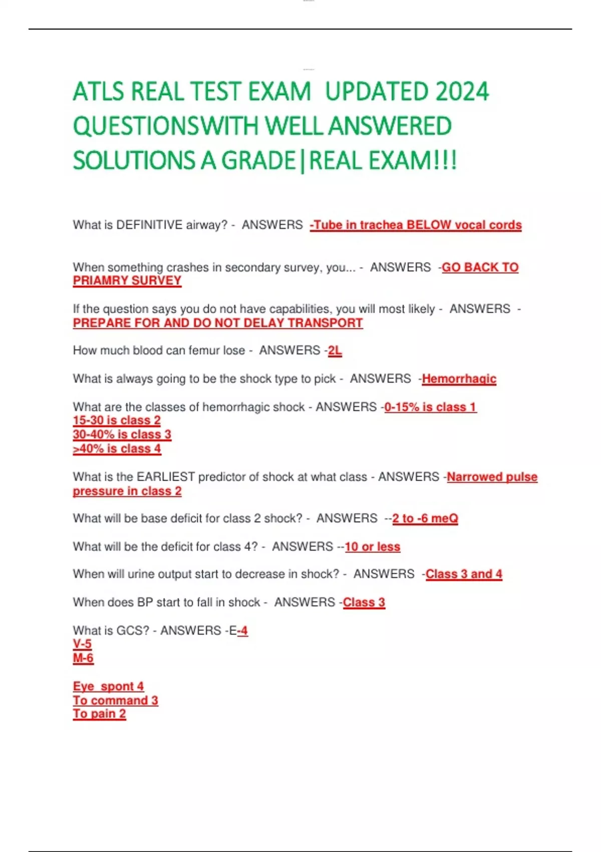 ATLS REAL TEST EXAM UPDATED 2024 QUESTIONS WITH WELL ANSWERED SOLUTIONS A GRADE|REAL EXAM!!!