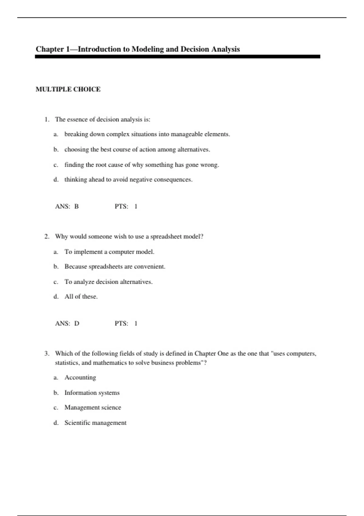1. The essence of decision analysis is: