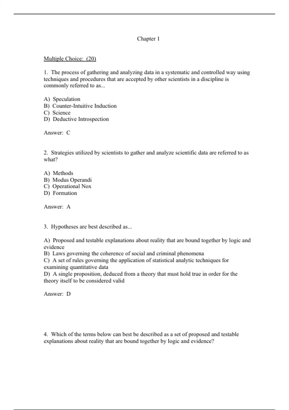 4. Which of the terms below can best be described as a set of proposed and testable