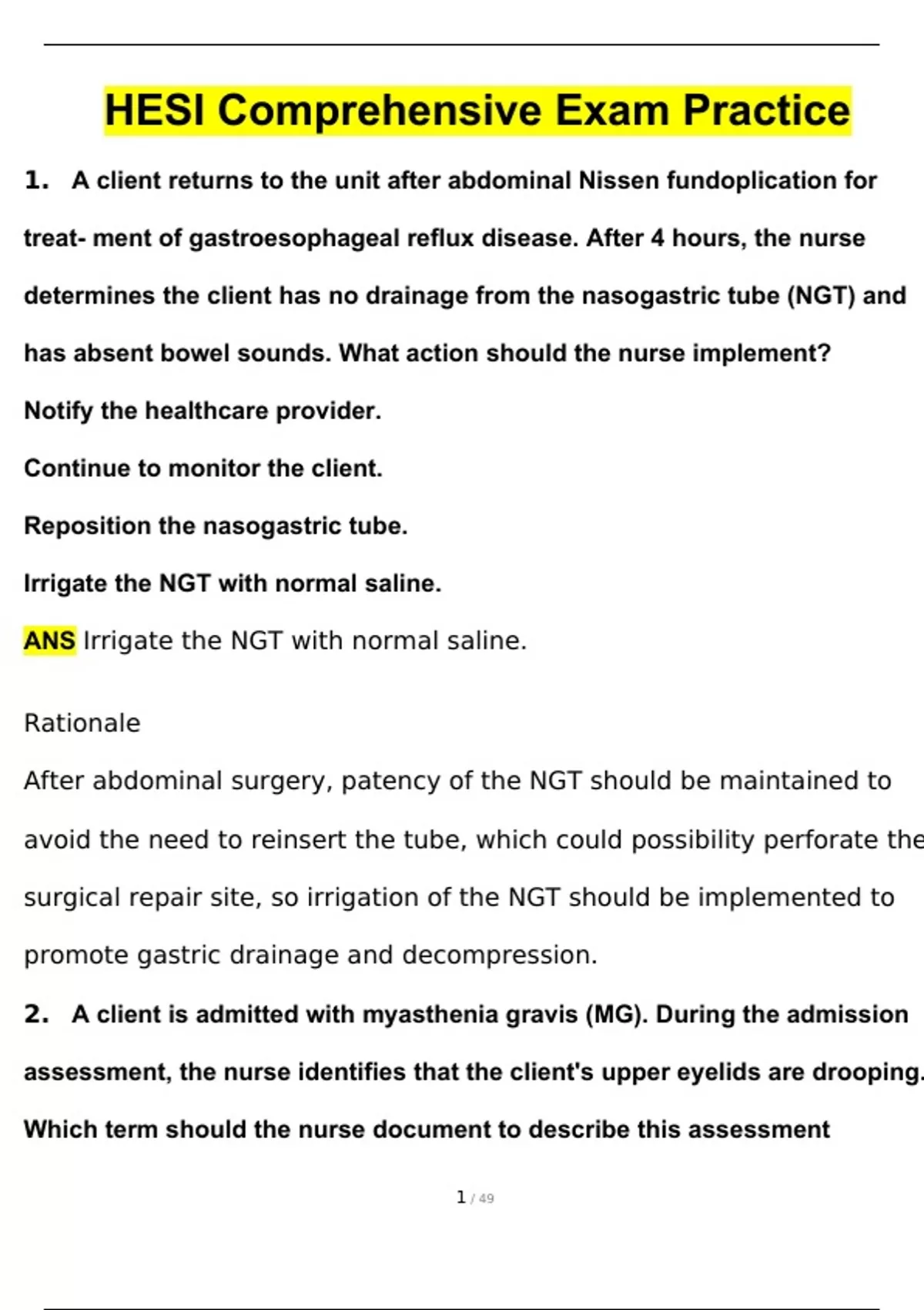 HESI Comprehensive Exam Practice Questions and Answers (2024 / 2025) (Verified Answers)