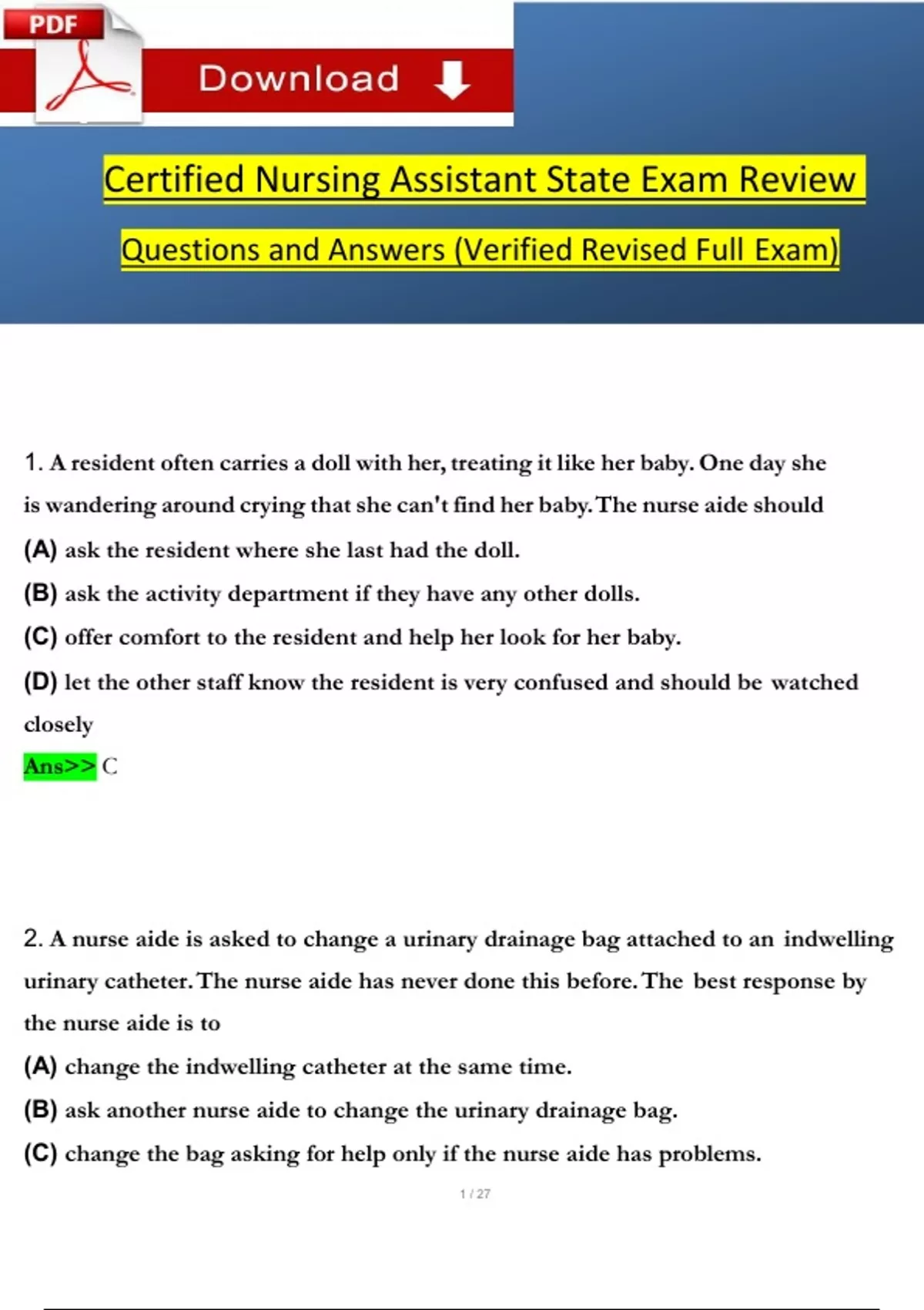 CNA - Certified Nursing Assistant State Exam Review (2024 / 2025) Expected Questions and Revised Correct Answers. with 100% Guarantee Pass