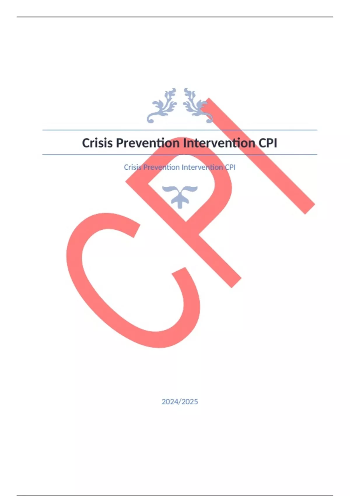 Crisis Prevention Intervention CPI Question and answers verified to pass