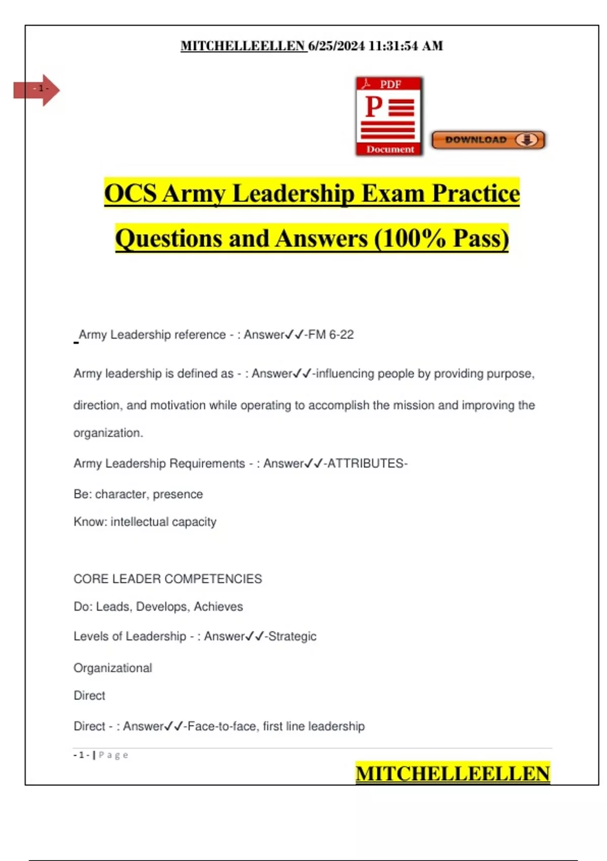 OCS Army Leadership Exam Bundle Pack with Complete Solutions