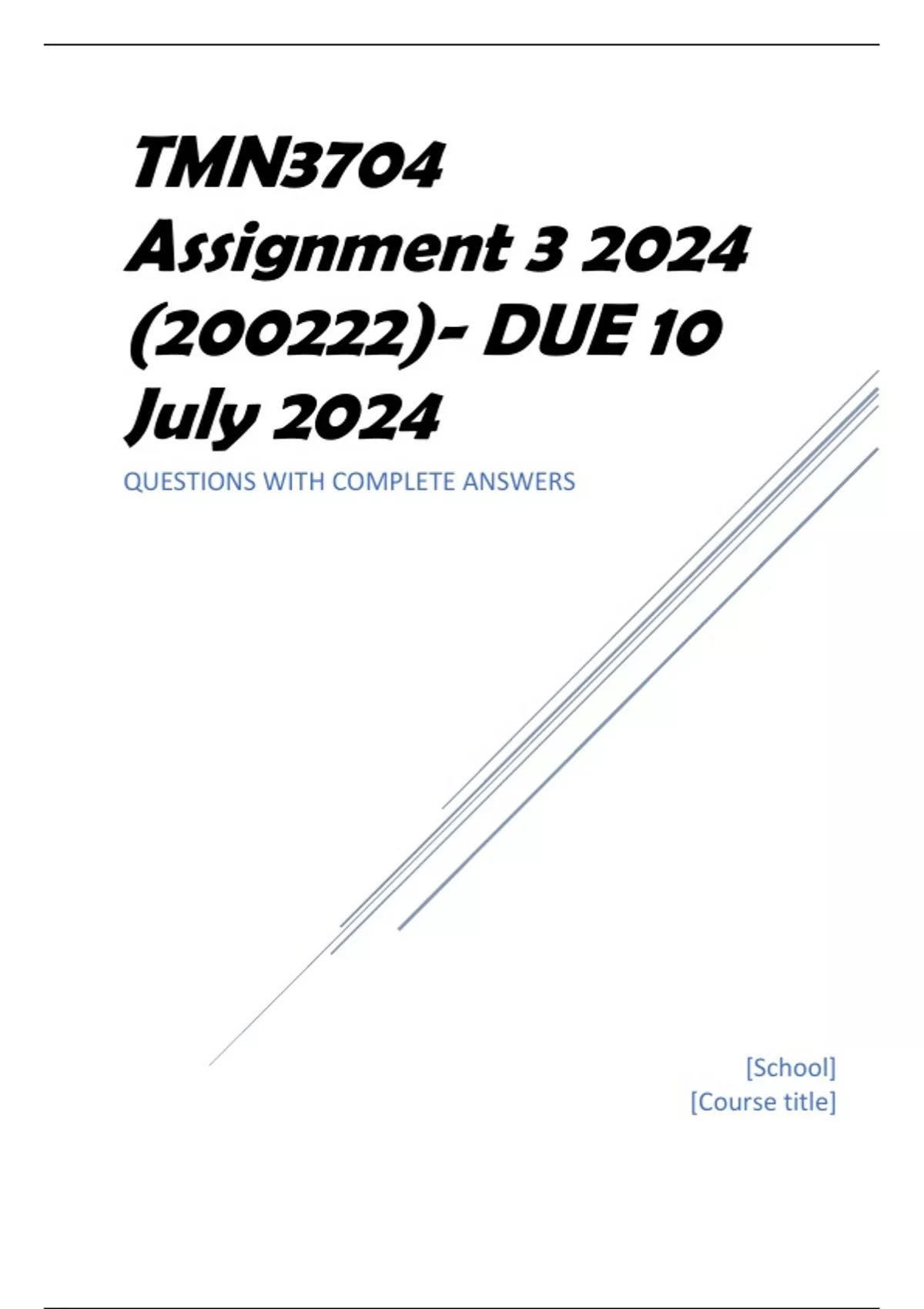 TMN3704 Assignment 3 2024 (200222)- DUE 10 July 2024 QUESTIONS WITH COMPLETE ANSWERS