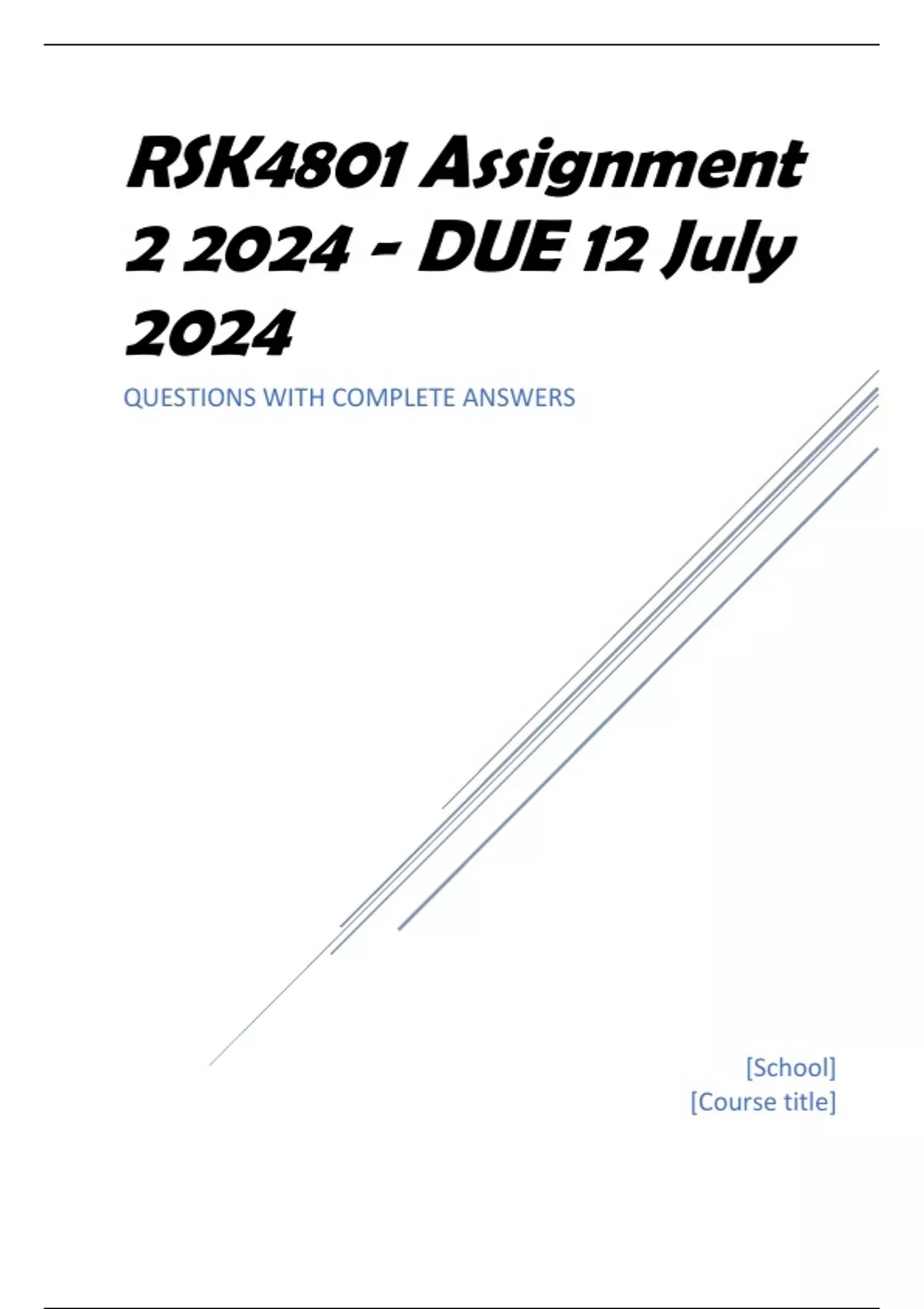 , RSK4801 Assignment 2 2024 - DUE 12 July 2024